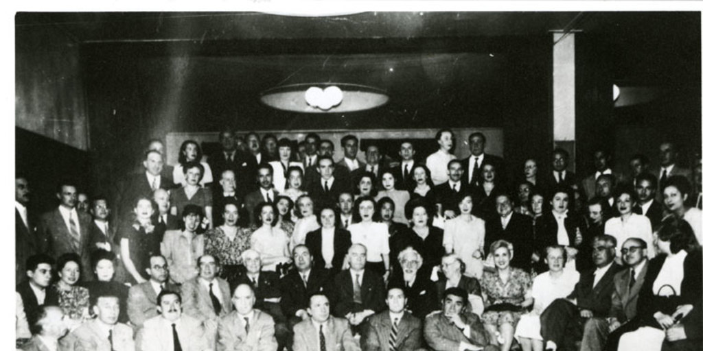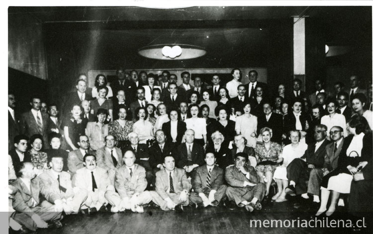 Manuel Rojas en el restaurante "El Lucerna", junto a destacados escritores nacionales, hacia 1947