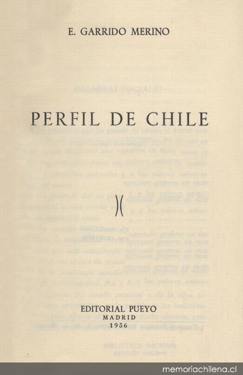 Perfil de Chile / Edgardo Garrido Merino. Madrid : Pueyo, 1956. 265 páginas
