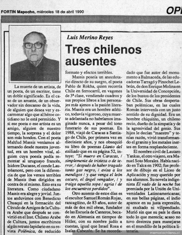 Fortín Mapocho. Santiago : [s.n.], 1947-1991 (Santiago : Impr. Britania) 56 v., (18 abril 1990), p. 11