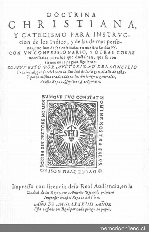 Doctrina christiana y catecismo para la instruccion de los indios y de las demas personas que han de ser enseñadas en la santa fe, 1584