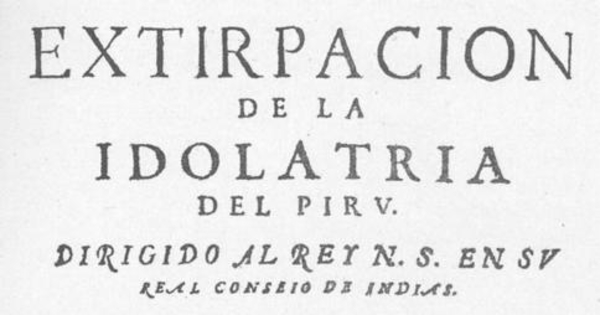 Portada de Extirpacion de la idolatria del Piru, 1621