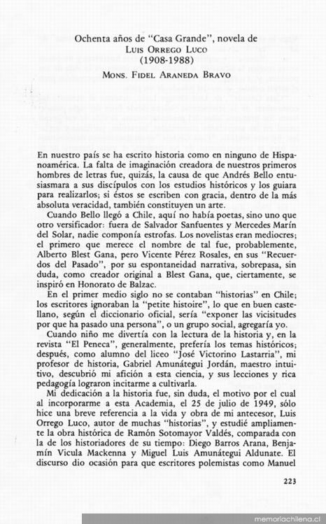 Ochenta años de Casa grande, novela de Luis Orrego Luco (1908-1988)