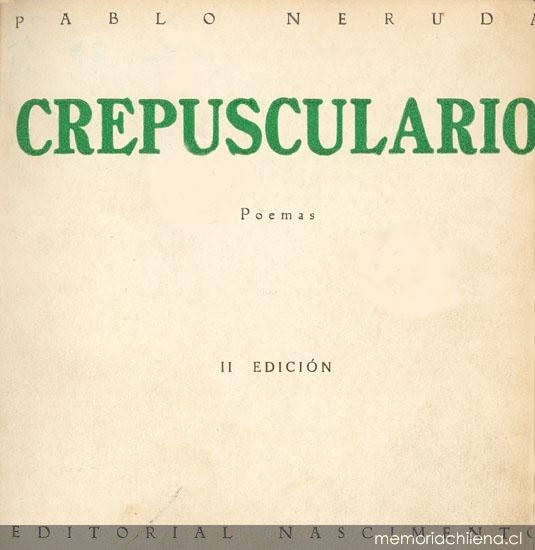 Crepusculario / Pablo Neruda. 2a. ed. Santiago : Nascimento, 1926. 167 p.