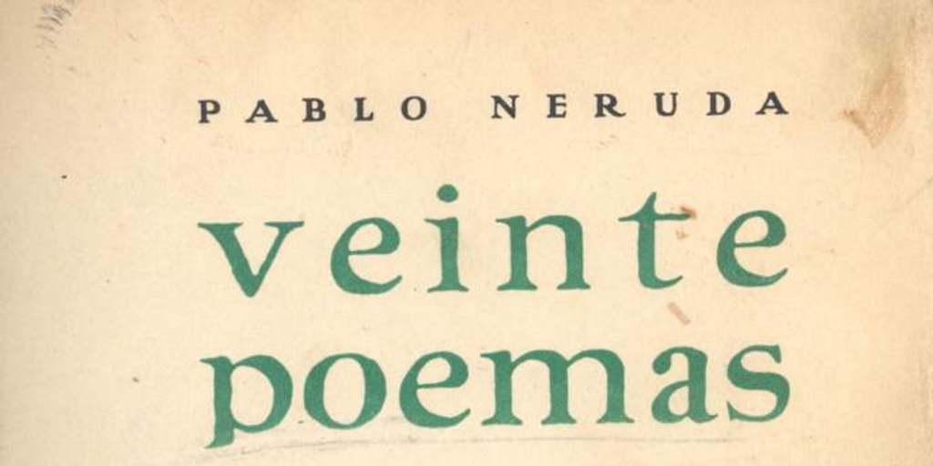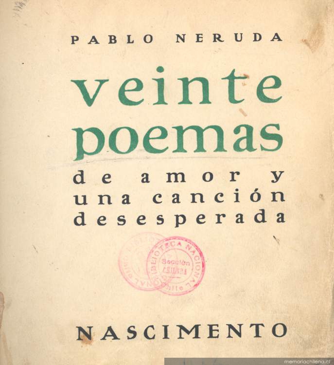 Veinte poemas de amor y una canción desesperada / Pablo Neruda. Santiago : Nascimento, 1924. [21] hojas de láminas sin numerar