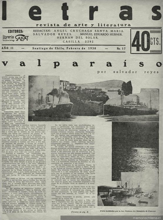 Letras. Santiago : Librería Salvat, 1928-1930 (Santiago : La Nación) 3 v., n° 17, (feb. 1930)