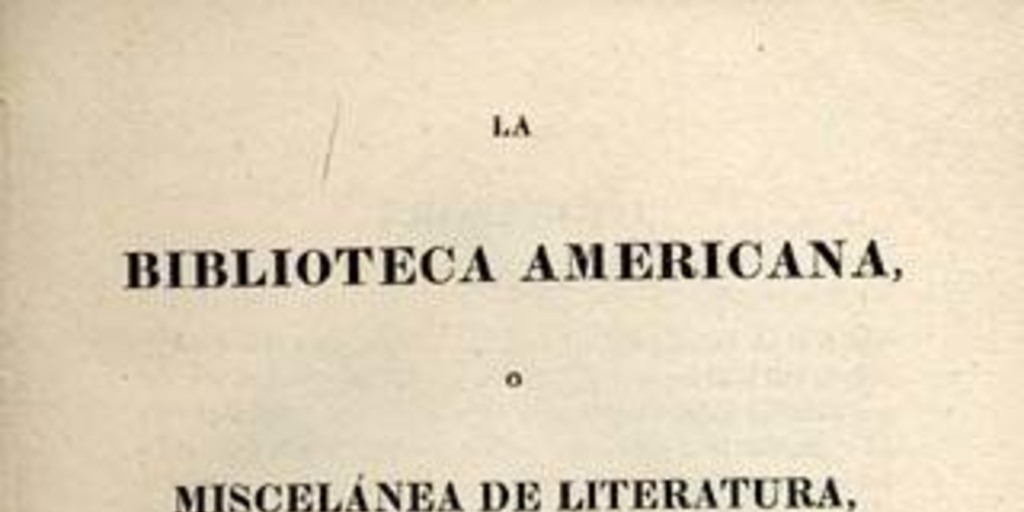 La biblioteca Americana, o, Miscelánea de literatura, artes y ciencias. Londres : Imprenta G. Marchant, 1823. 1 volumen