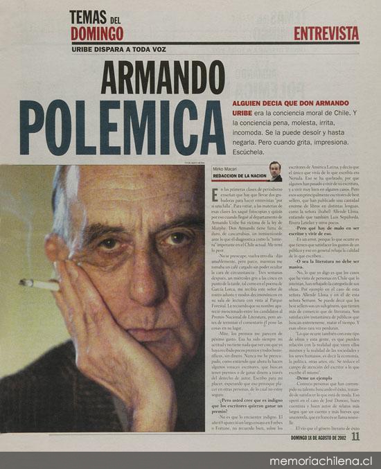 La Nación. Santiago : Talls. Graf. La Nación, 1917- v., (18 ago. 2002), p. 11-13