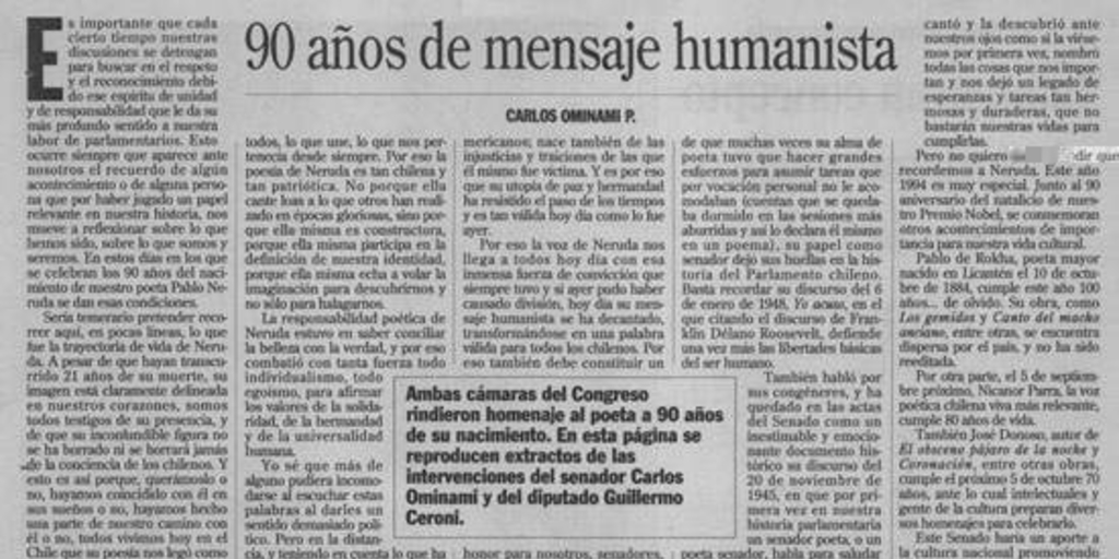 La Época. Santiago : Impresiones y Comunicaciones, 1987-1998 (Santiago : Impasa) 273 v., (23 jul. 1994), p. B14
