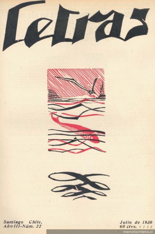 Letras. Santiago : Librería Salvat, 1928-1930 (Santiago : La Nación) 3 v., n° 22, (jul. 1930)
