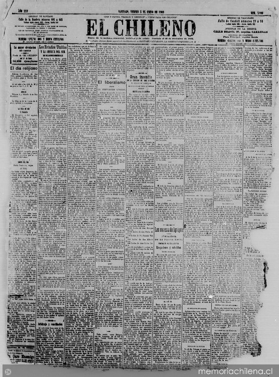 El Chileno. Santiago : Impr. Bandera, 1883-1924. 104 v., (3 ene. 1908), p. 1