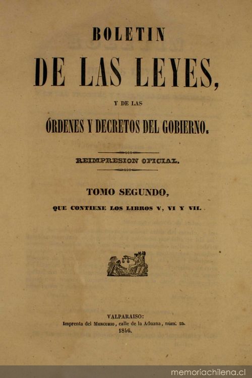 Boletín de las leyes y de las ordenes y decretos del gobierno / Santiago : [s.n.], 1824 (Santiago : La Independencia). 22 p., tomo segundo, libro quinto, núm. 4, p. 84