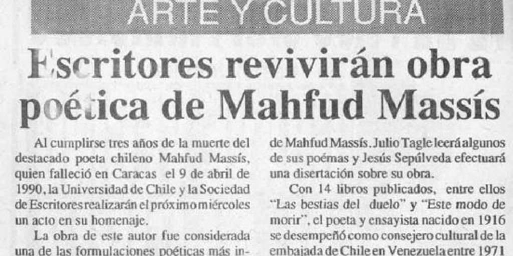 Escritores revivirán obra poética de Mahfud Massis