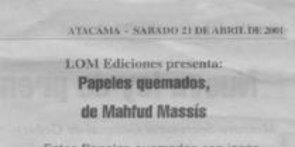 Materias: Massis, Mahfud, 1916-1990. Papeles Quemados