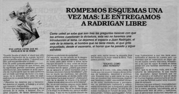 Rompemos esquemas una vez más : le entregamos a Radrigán libre
