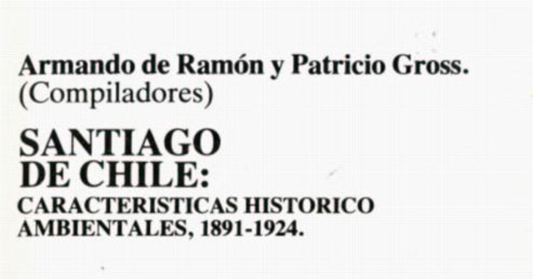 Santiago de Chile : caracteristicas histórico ambientales : 1891-1924 / [compiladores] Armando de Ramón y Patricio Gross. Londres : Nueva Historia, 1985. 100 p.
