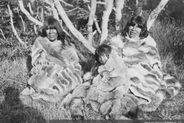 Dos mujeres y una niña Selk'nam posando con vestiduras originales, hacia 1920