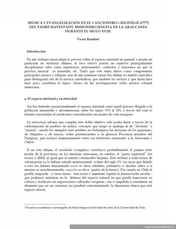 Música y evangelización en el cancionero Chilidúgú (1777) del padre Havestadt, misionero jesuita en la Araucanía durante el siglo XVIII