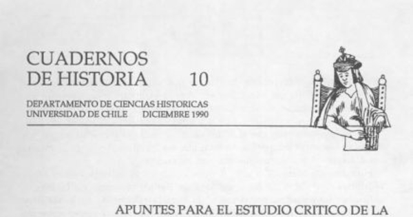 Cuadernos de historia / Universidad de Chile, Facultad de Filosofía, Humanidades y Educación, Departamento de Ciencias Históricas. Santiago : El Departamento, 1981- (Santiago : Universitaria) v., n° 10, (dic. 1990), p. 9-49