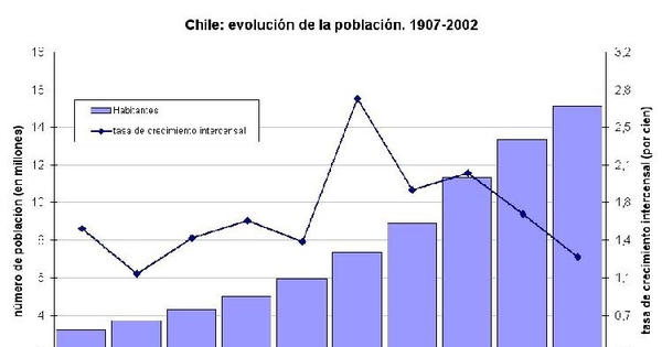 Evolución de la población de Chile y tasas de crecimiento intercensal 1907-2002