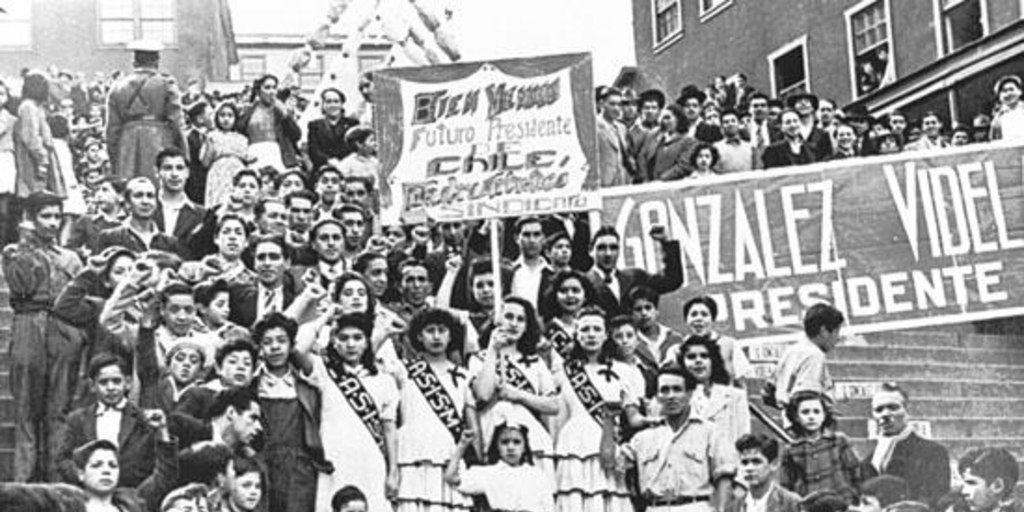 Manifestación en Sewell para la candidatura de Gabriel González Videla, 1946