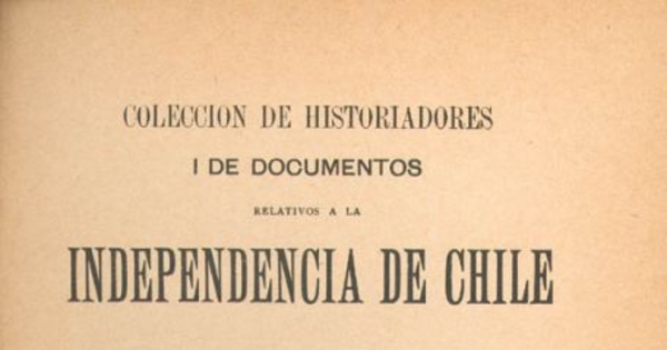 Colección de historiadores i de documentos relativos a la independencia de Chile. Santiago : Impr. Cervantes, 1900-1966. 43 v.