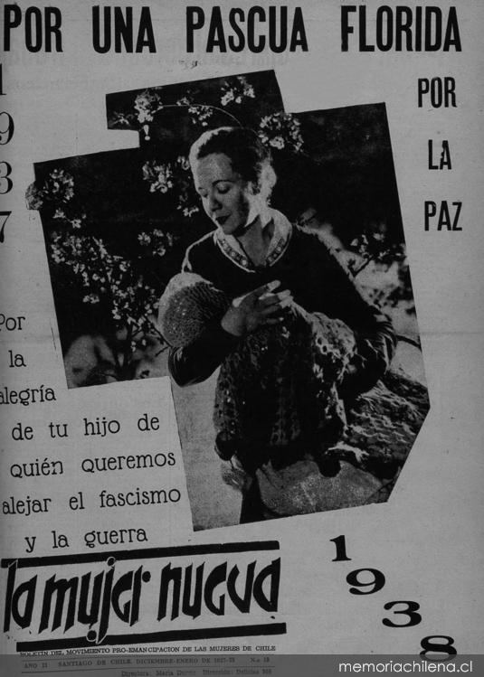 La Mujer nueva / boletín del Movimiento Pro-Emancipación de las Mujeres de Chile. Santiago : El Movimiento, 1935-1941 (Santiago : Imprenta Gutenberg) 27 números, año 2, número 19, (diciembre 1937-enero 1938)