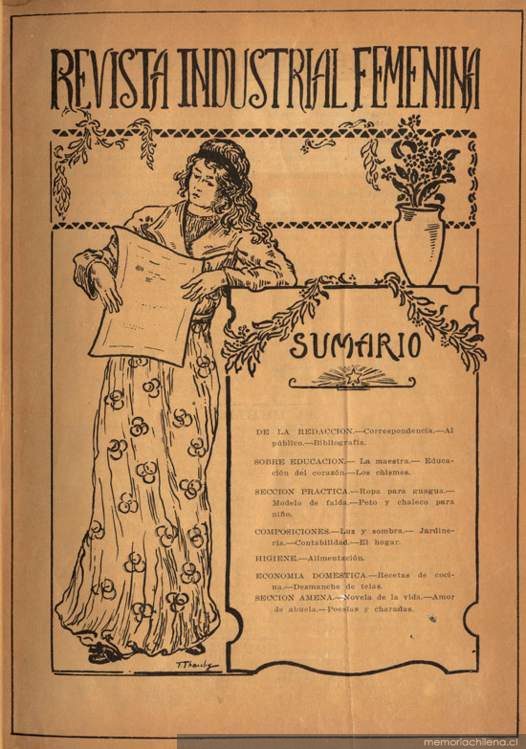 Revista industrial femenina. Santiago : Alumnas del Curso Normal de la Escuela Profesional Superior, 1912-1914. 2 v., año I, n° 11, (nov. 1913), p. 1