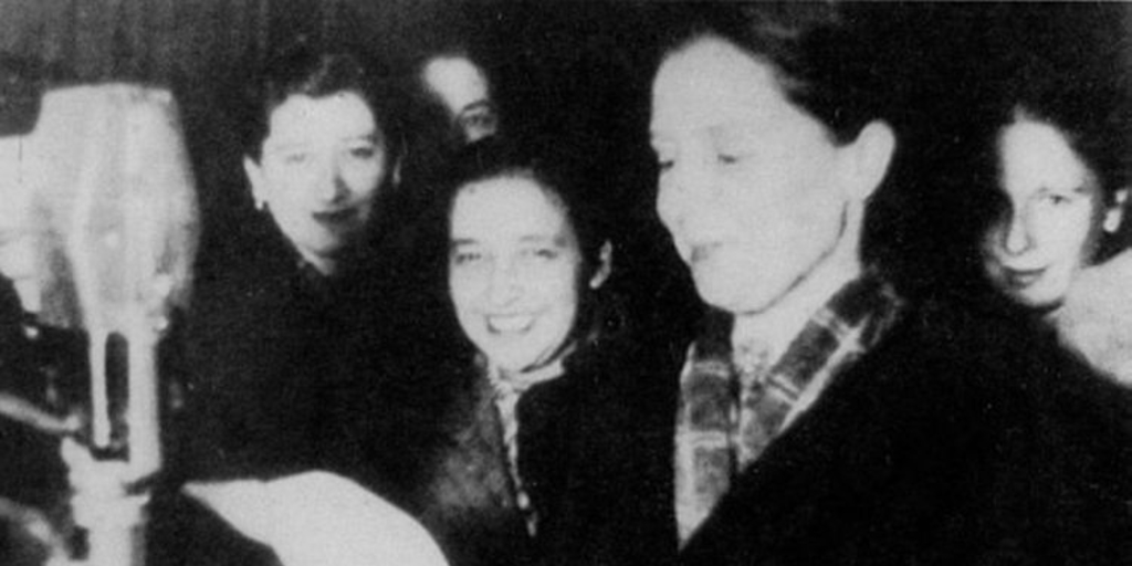 Elena Caffarena haciendo campaña radial del Memch, 1938