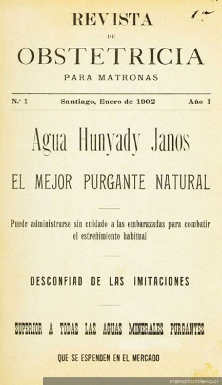 Revista de obstetricia : para matronas. Santiago : [s.n.], 1902. 1 v., año 1, n° 1, (ene. 1902), p. 1-3