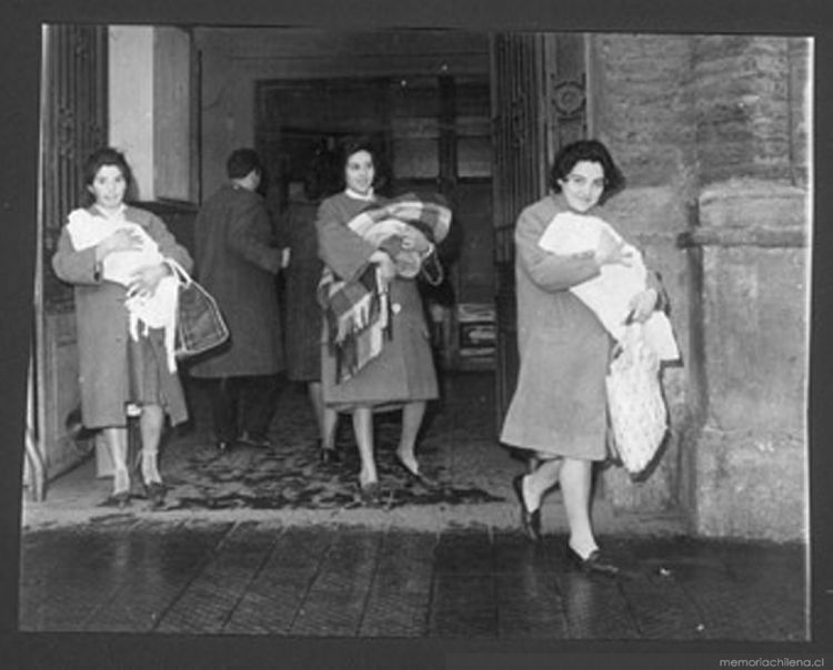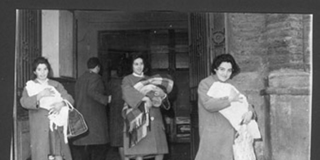 Madres saliendo de la Maternidad del Hospital San José, agosto 1964