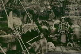 Mujer mapuche tejiendo a telar en el interior de una ruca, 1906