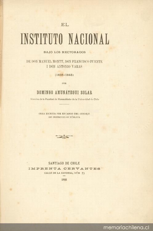 El Instituto Nacional bajo los rectorados de don Manuel Montt, Francisco Puente y Antonio Varas (1835-1845)