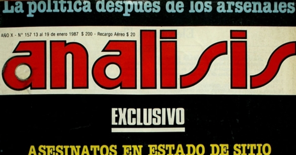 Análisis. Santiago, Soc. Periodística Emisión Limitada, 1977-1993 (Santiago : Ed. Antártica) v., año 10, n° 157-167, (ene.-mar. 1987)