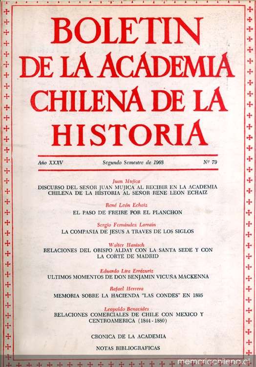 Boletín de la Academia Chilena de la Historia. Santiago : La Academia, 1933- (Santiago : Universitaria) v., n° 79, (1968), p. 121-205