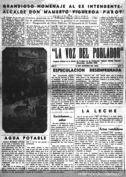 La Voz del poblador : n° 1-4, agosto-noviembre de 1953