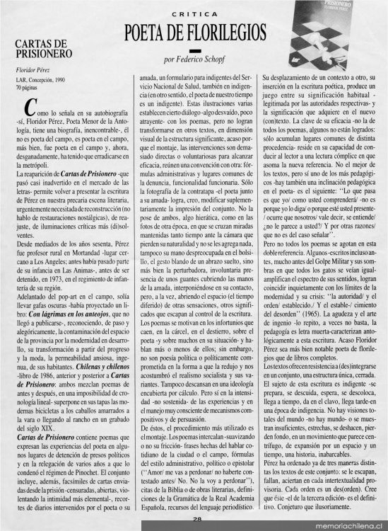 Reseña. Santiago : Publicaciones Nuevo Extremo, 1988- (Santiago : Edit. Antártica) v., no. 11, (1991), p. 28