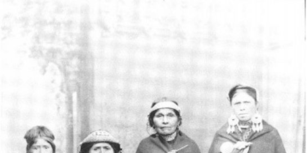 Mujeres y niños mapuche en el estudio fotográfico, hacia 1870