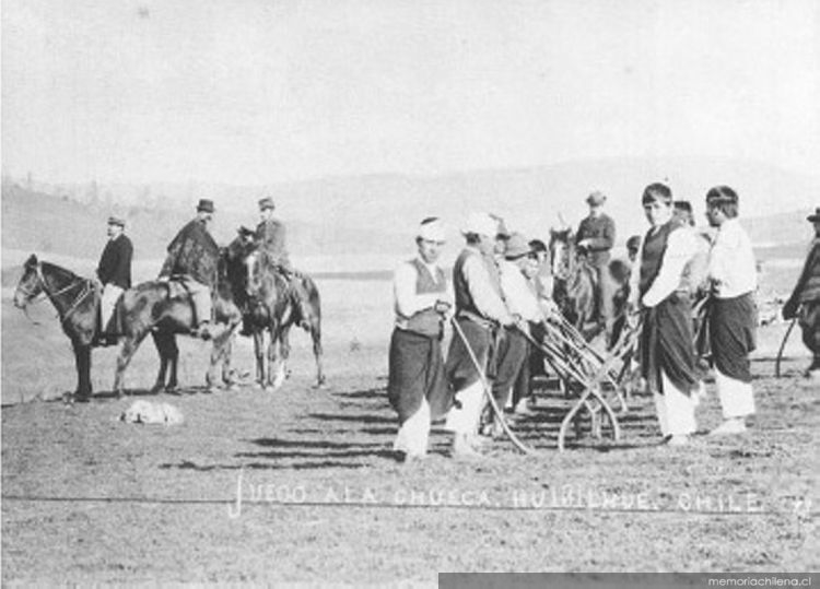 Palife, jugadores de chueca en Huiñilhue, IX Región, hacia 1890