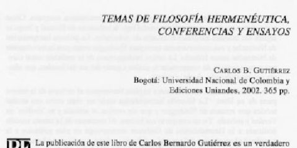 Temas de filosofía hermenéutica, conferencias y ensayos