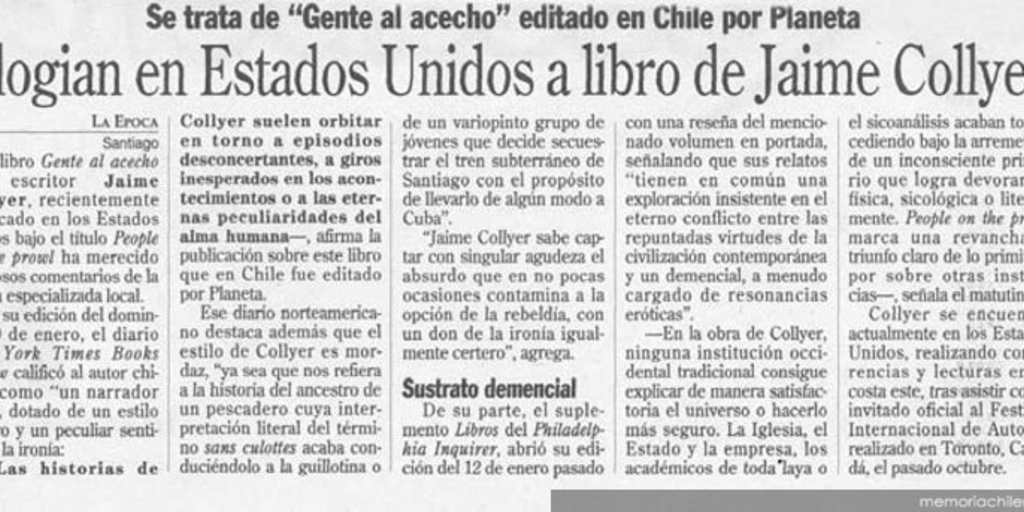 Elogian en Estados Unidos a libro de Jaime Collyer