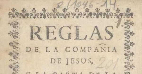 Reglas de la Compañia de Jesus y la carta de la obediencia de nuestro glorioso padre San Ignacio formulados de los votos y documentos del mismo santo padre