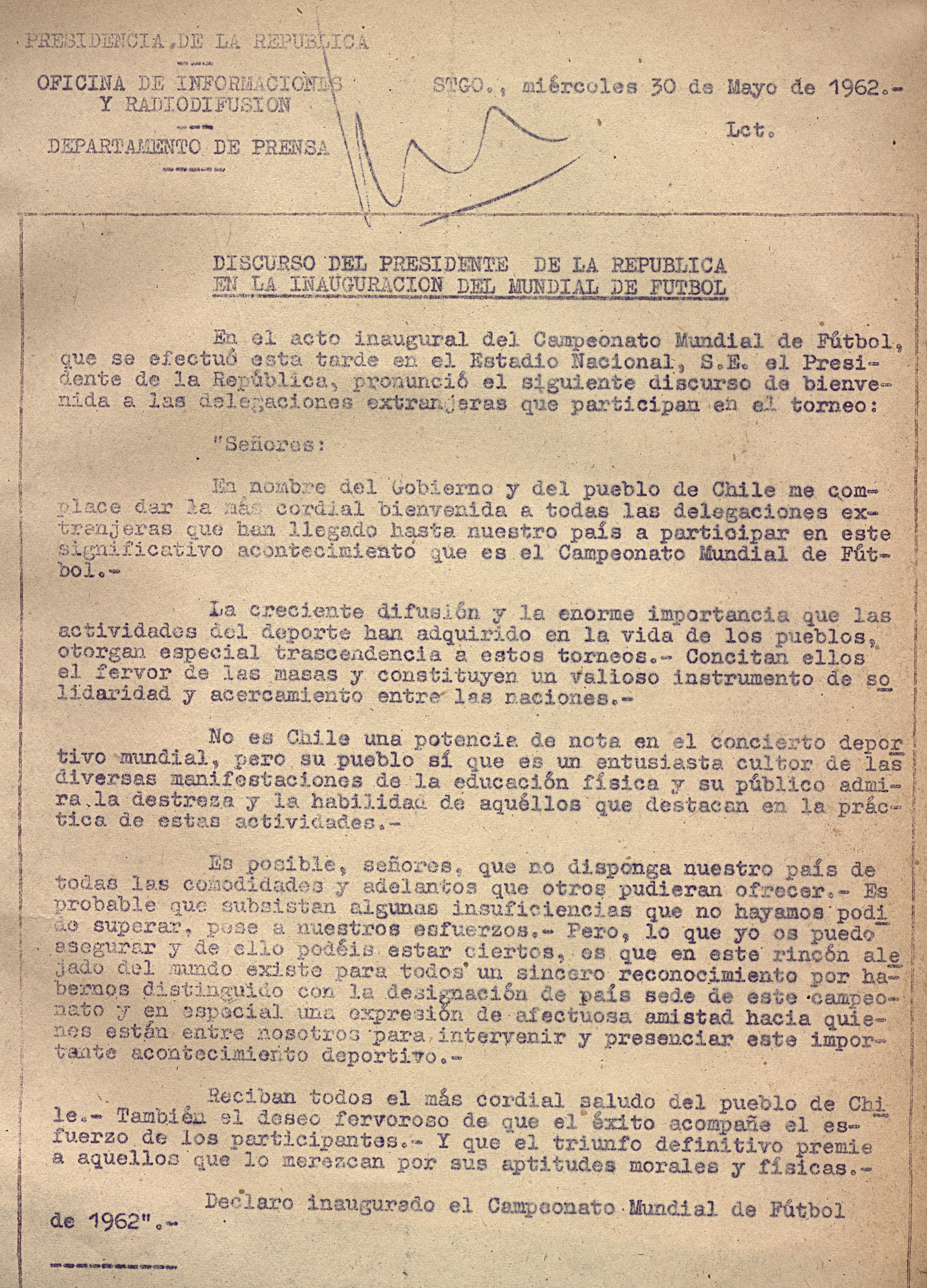 Discurso del Presidente de la República en la inauguración del Mundial de Fútbol