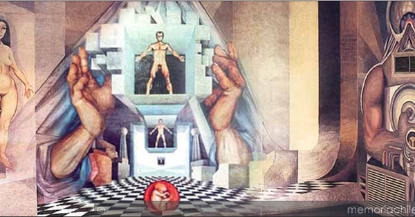 Mural "La Búsqueda" ubicado en el hall del Club de la República, en el muro poniente del hall de entrada
