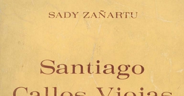 Santiago : calles viejas : historias de cuando sus nombres salieron del barro materno con la fuerza de lo que ha de vivir, porque daba el pueblo su agua de bautismo / Sady Zañartu. 1a. ed. Santiago : Gabriela Mistral, 1975. 159 p.