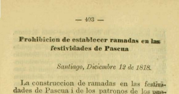 Prohibición de establecer ramadas en las festividades de Pascua: diciembre 12 de 1818