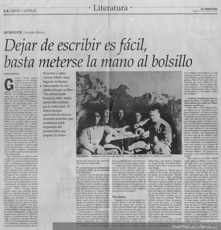 El Mercurio. Santiago : Talleres El Mercurio, 1900- . v., (10 ago. 2003), p. E4-E5