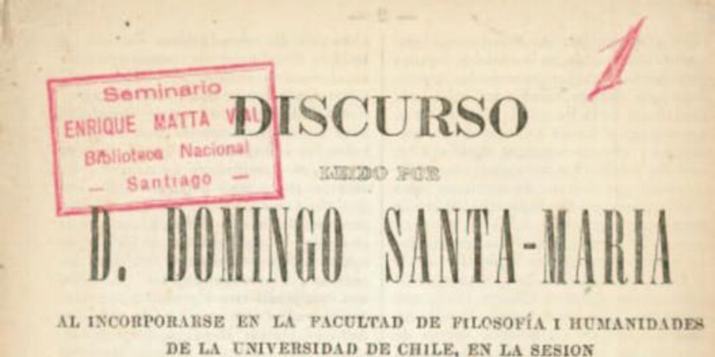 Discurso al incorporarse en la Facultad de Filosofía y Humanidades de la Universidad de Chile : en la sesión del 19 de abril de 1856