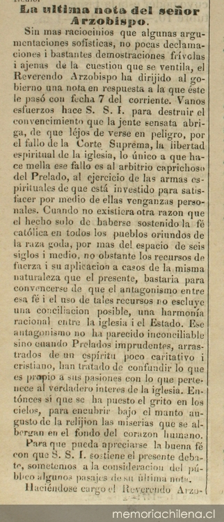 La última nota del Señor Arzobispo