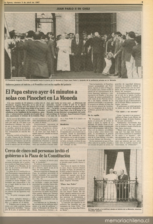 La Época. Santiago : Impresiones y Comunicaciones, 1987-1998 (Santiago : Impasa) 273 v., n° 17, (3 abril 1987), p. 9