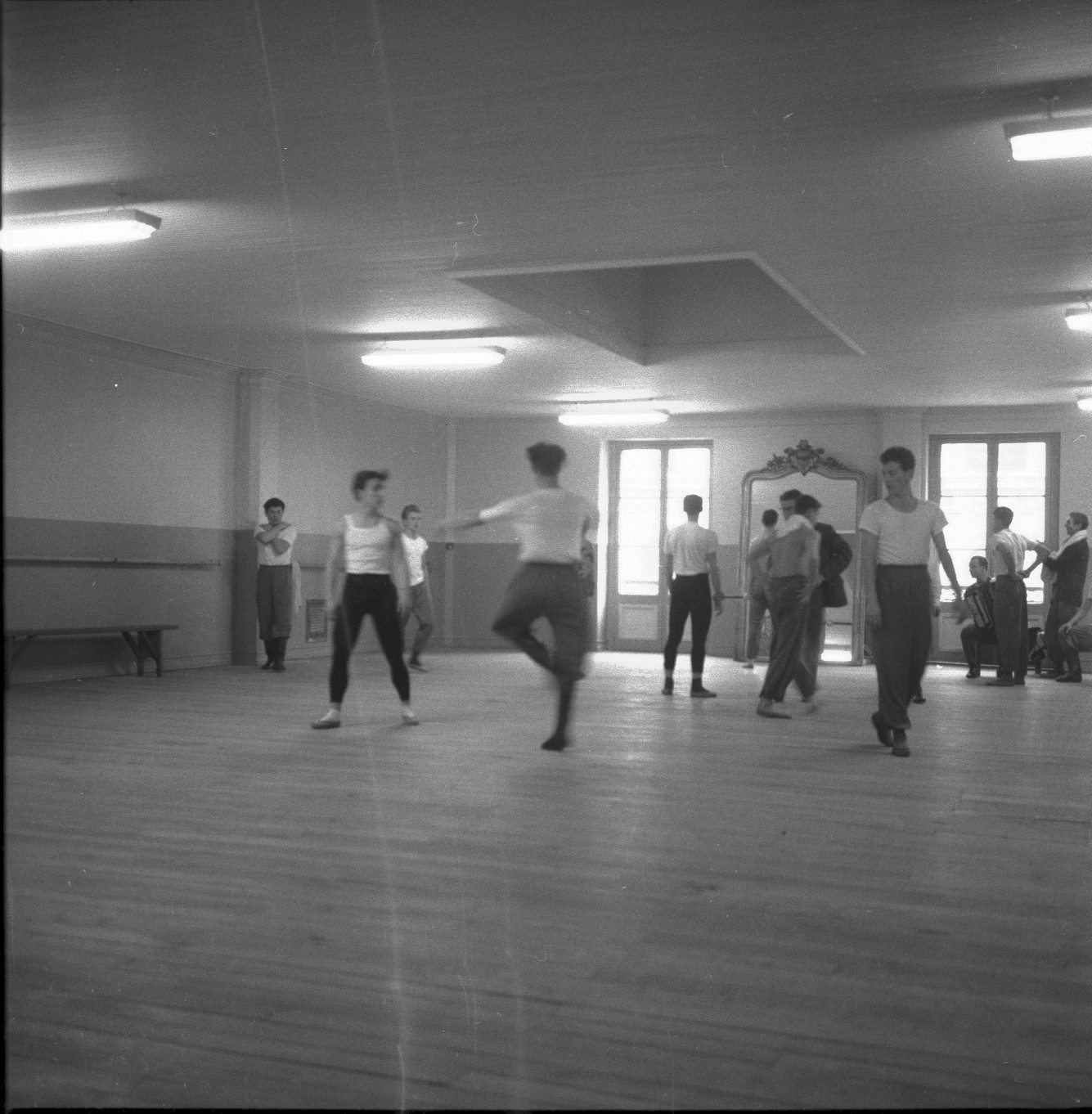 Integrantes del ballet Berioska en un ensayo, hacia 1960